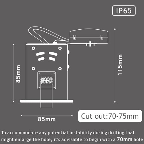 Fissaggio a molle, spessore massimo consigliato del soffitto 30 mm, diametro esterno 86 mm, profondità incasso: 110 mm. Realizzati in acciaio pressofuso con un design circolare, crea un look moderno in cucina, bagno, soggiorno.