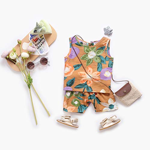 Sanlutoz Neonato Estate Senza Maniche Bambina Tops + Pantaloncini 2 Pezzi Fiori Cotone Set di Abbigliamento per Neonate (6-12 Mesi, BCS2020-YE)