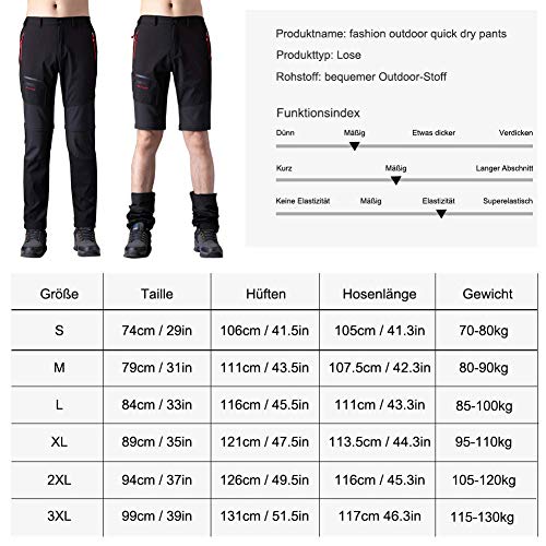 ➧ Pantaloni funzionali rimovibili con cerniera: le gambe dei pantaloni possono essere separate con una cerniera, possono essere facilmente e rapidamente convertite in pantaloncini lunghi, adatti per cambiare le condizioni esterne e le condizioni atmosferiche.