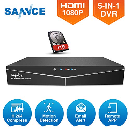 SANNCE DVR 4ch 1080N Videoregistratore H.264 HDMI P2P ONVIF compatibile con Telecamera IP/AHD/TVI/CVI/Analogica Videosorveglianza Domestica con 1TB HDD