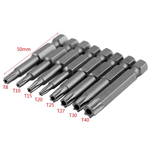 SANON 8 pezzi sicurezza per cacciaviti Torx, 1/4" Codolo Esagonale T8-T40 Set di Punte Torx di Sicurezza Set di Punte per Cacciavite a Stella Magnetica in Acciaio Lungo 50mm