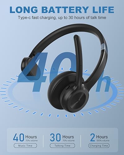 ❤️ 【Comfort per tutto il giorno】 Cuffie con microfono per pc è dotato di morbidi padiglioni imbottiti e di un archetto flessibile e regolabile. Pesa solo 101,6 g e può essere indossato tutto il giorno senza alcun peso. Cuffie bluetooth con microfono ideali per ufficio, affari, call center, home office, apprendimento remoto o ascolto di musica.
