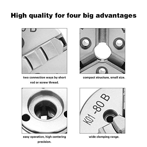 SANOU - Mandrino autocentrante a 3 griffe, diametro 80 mm, mandrino in acciaio K01-80B