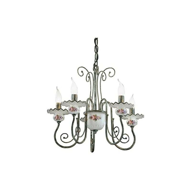 Decisamente nostalgica la linea Sanremo che evoca il passato, quando l'illuminazione degli ambienti era affidata alla luce fioca delle candele. Ottone verniciato ed anticato e decorazioni floreali manuali rendono ogni lampada un gioiello. Altezza: 52 Cm Diametro: 57 Cm
