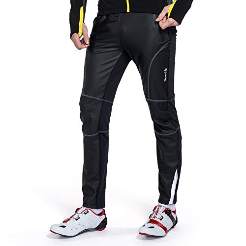 Santic Ciclismo Pantaloni Uomo Invernali Bici Bicicletta Termica Resistente all'Acqua Antivento Fleece Outdoor Campeggio Trekking Corsa Pantaloni -Nero