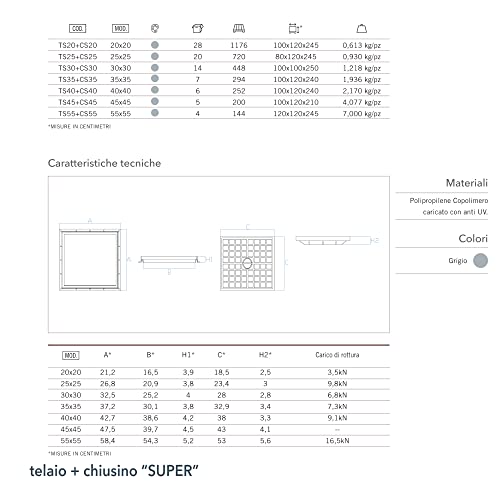 De Santis Chiusino in PVC plastica Completo di Coperchio e Telaio Grigio 25x25 35x35 45x45 55x55 Made in Italy (cm 25 x 25)