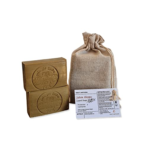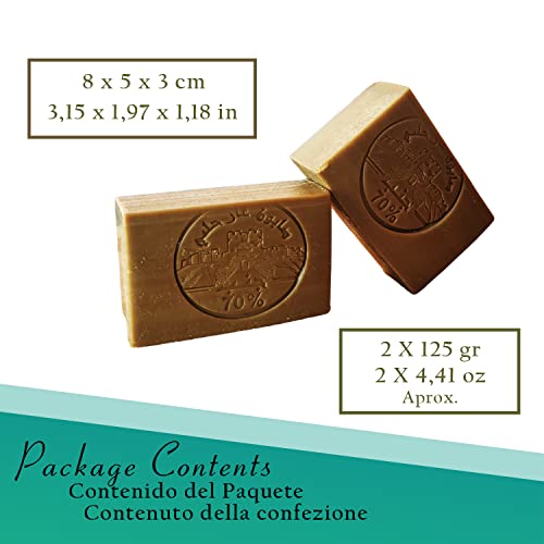 Sapone di Aleppo originale PACK 2 Puro Olio d'oliva 70% Olio di Alloro, Sapone Naturale PH Neutro Idratante Tradizionale Fatto a mano Vegano