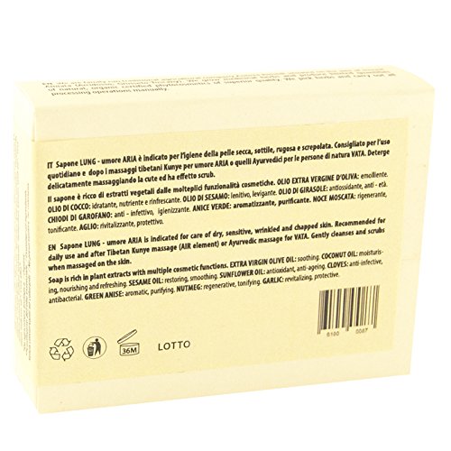 Sapone ayurvedico BIO LUNG a effetto SCRUB 50 gr - a base di OLIO EXTRA VERGINE DI OLIVA - impastato A FREDDO con stagionatura NATURALE - Puro Concentrato di Natura - Prodotto a mano in Toscana