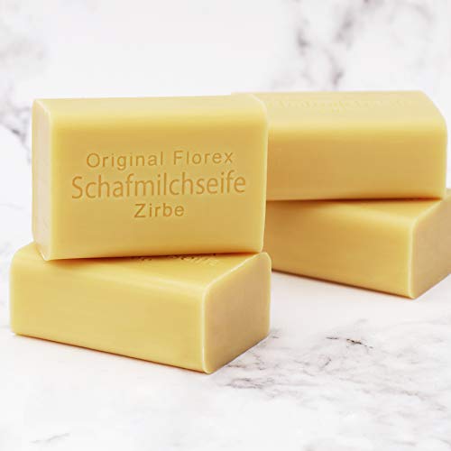 Sapone al latte di pecora rettangolare, 4 x 100 g, color cembro confezionato in violoncello