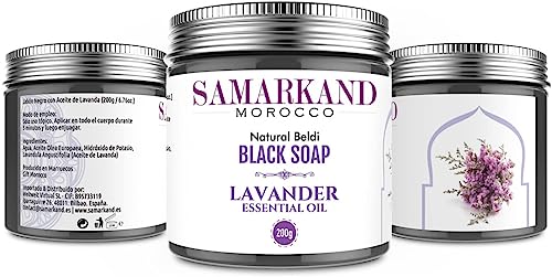 Sapone Nero Marocchino con Olio Essenziale di Lavanda BIO 100% Puro Naturale Beldi per Hammam - Originale dal Marocco 200 g (Lavanda)