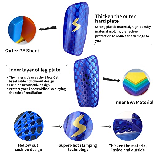 ⚽. Protezione completa ed efficiente - I nostri parastinchi da calcio sono creati con materiale della calotta in PP ad alta resistenza e una spugna EVA più spessa può migliorare l'assorbimento degli urti e la funzione anti-colpi contro gli impatti violenti. Fornendo una potente protezione per la parte inferiore della gamba e riducendo gli infortuni sportivi, ti consente di allenarti e competere senza preoccupazioni.