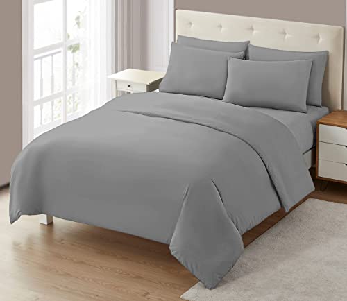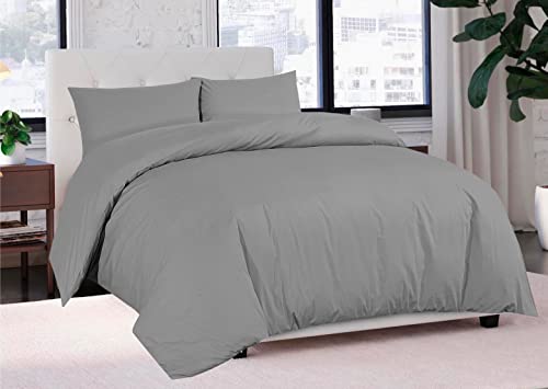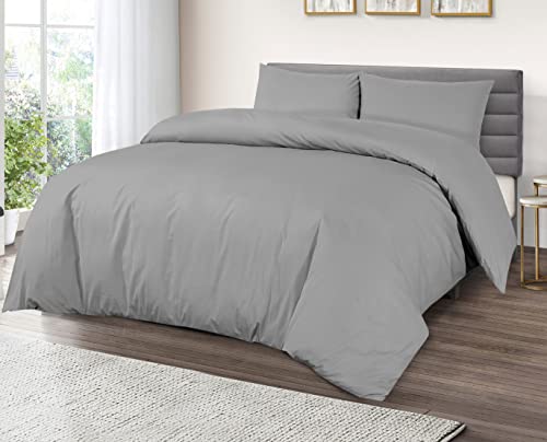 Sapphire Collection - Set di copripiumino con federa in 100% cotone egiziano 300 fili, disponibile in tutte le misure, cotone egiziano, Grey, Super King