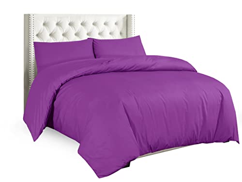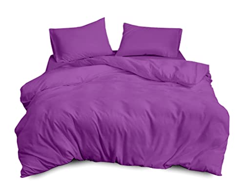 Sapphire Collection - Copripiumino in tinta unita con federe copricuscino in cotone percalle, biancheria da letto, non necessita di stiratura, Fuchsia, King