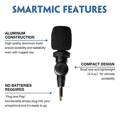 Saramonico Mini SmartMic Microfono flessibile a condensatore per smartphone, microfono Vlogging per iPhone e video YouTube, microfono per IOS Apple iPhone 7 8 x 6 iPad e telefono Android