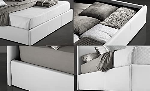 Kit letto completo letto con box contenitore in similpelle bianco + materasso ortopedico in whaterfoam traspirante + guanciale omaggio in fibra 3D