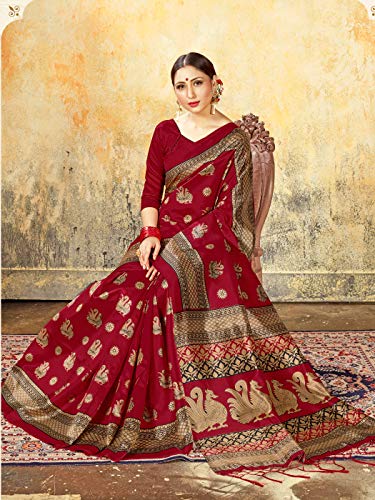 Sarees - Sari da donna Mysore Art in seta stampata Saree, regalo etnico indiano tradizionale matrimonio sari con camicetta non cucita, Bordeaux, Etichettalia unica