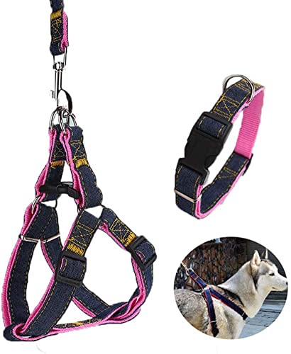 Sarekung Set guinzaglio per Cani Collare guinzaglio in Denim per Gatto di Cane Cucciolo, Collare Regolabile per Gilet Cane