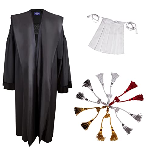 Sartoria Leonardo Milano KIT Toga, Pettorina e coppia di Cordoniere per Avvocato o Magistrato (Taglia M 120cm (Altezza persona 166-175cm), Pura Lana Super 130's, Argento/Nero (Avvocato))