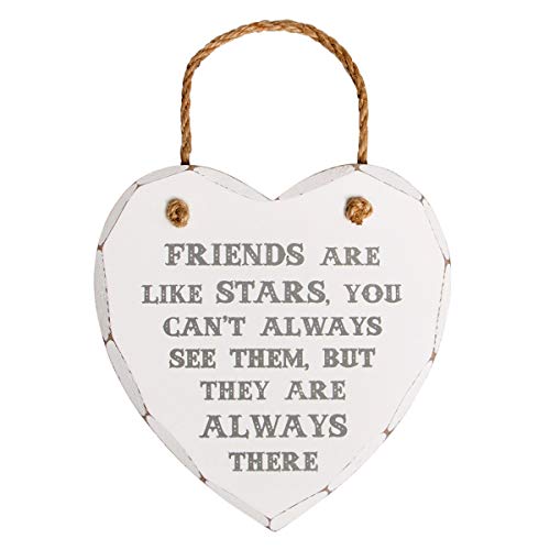 Sass & Belle - Targhetta da appendere, a forma di cuore, in stile Shabby Chic, scritta “Friends Are Like Stars” [lingua inglese]