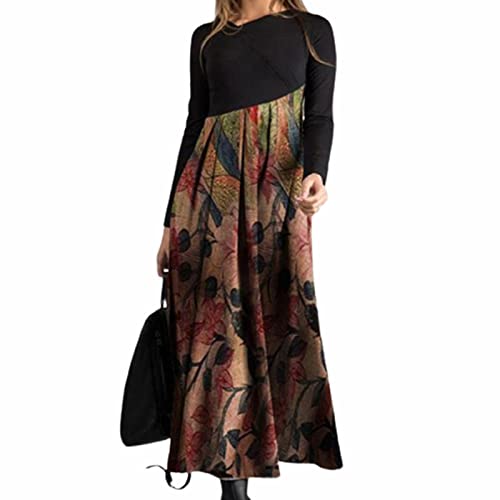 Sassizira Vestito Donna Elegante Lungo a Caviglia Abito Bohémien Ampio Vestito Boho Donna Girocollo Manica Lunga Abito Donna Sciolto Svasato Taglia Forte S-XXL Autunno/Primavera (Rosso Rosa, XL)