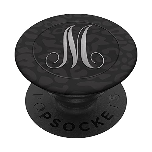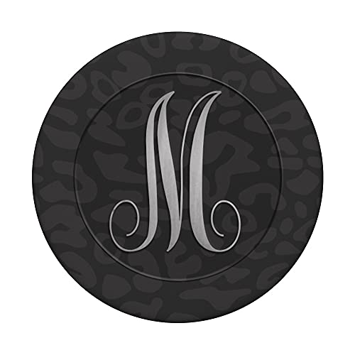 Sassy Black Mid Night Leopard Monogram Lettera iniziale M PopSockets PopGrip: Impugnatura per Telefoni Cellulari e Tablet Intercambiabile