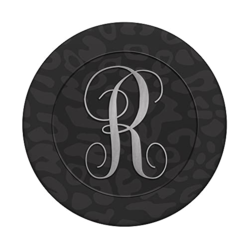 Sassy Dark Night Leopard Monogram Lettera iniziale R PopSockets PopGrip: Impugnatura per Telefoni Cellulari e Tablet Intercambiabile