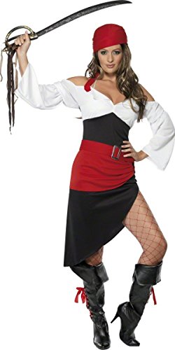 Sassy Pirate Wench Costume with Skirt, Black, Top, Belt & Headscarf, (L)