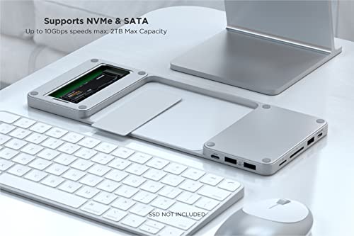 SATECHI USB C Slim Dock per iMac da 24" Con Alloggiamento Per SSD M.2 PCIe NVMe e SATA (Senza Bisogno Di Attrezzi)- Porta dati USB C, USB A, 2 USB 2.0, Lettore Di Schede Micro/SD (Argento)