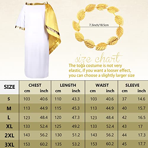SATINIOR 2 pezzi costume greco bianco romano toga per adulti costume tunica con foglia corona copricapo alloro corona di alloro (L)