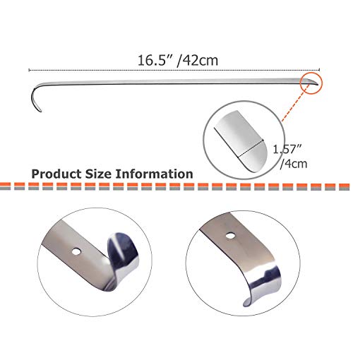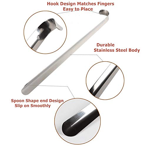 Satisfounder - Calzascarpe con manico lungo, in metallo resistente, con gancio in acciaio INOX (40,6 cm)