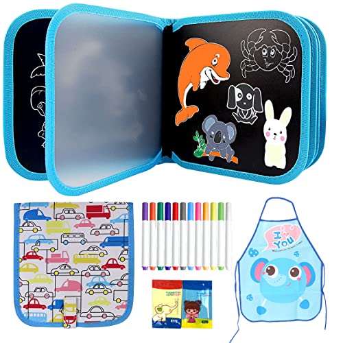 Satohom Portatile da Disegno per Bambini Doodle Disegno Giocattoli Tavolo da Disegno Cancellabile Bambini con 12 Penne Cancellabili Colorate 14 Pagine Blocco da Disegno Riutilizzabile Regalo Bambini