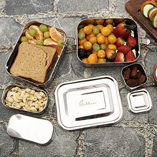 Sattvaa in acciaio inox Eco Lunchbox & Bread Box | Approvato TÜV | 4 in 1 | Volume totale1900ml | Contenitore di preparazione pasti riutilizzabili | Contenitore per alimenti ecologici senza BPA