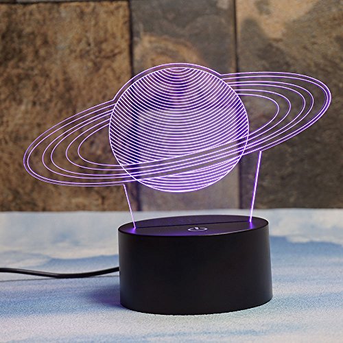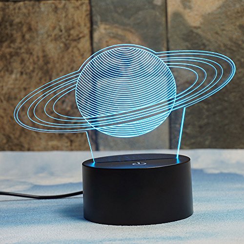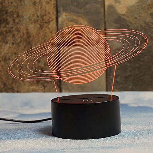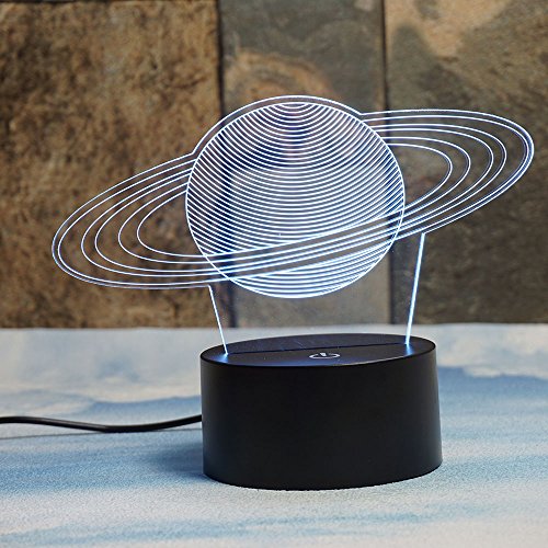 Saturno 3D Optical Illusion Lampada Luce Notturna, Yunplus 7 cambiamento di colore pulsante tattile USB scrittorio LED lampada da tavolo luce