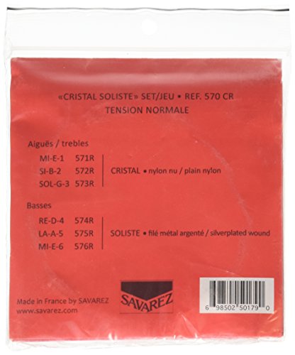 Savarez 656017 Corde per Chitarra Classica Alliance Cristal 570Cr Set Tensione Standard, Cristal Nylon, Rivestite Argentato, Rosso
