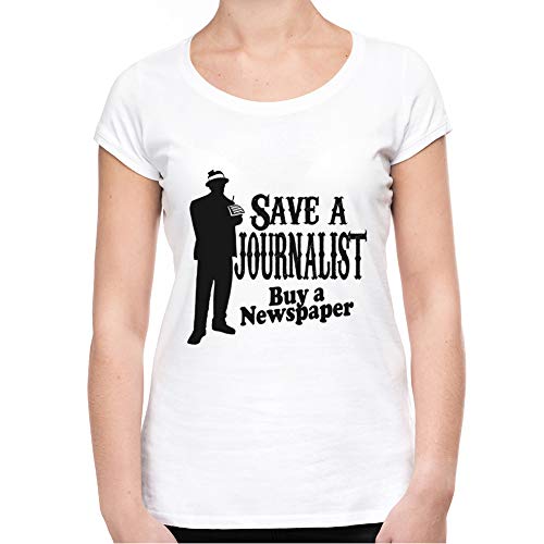 Save A Journalist Buy A Newspaper T-Shirt - Donna - Bianco - M