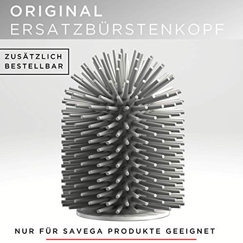 SAVEGA L'originale - Scopino per WC con supporto per montaggio a parete senza fori - Innovativo scopino per WC in silicone - Set di scopini per WC di alta qualità con supporto a parete in bianco -