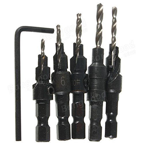 Saver 5pcs hss punta cono trapano svasatore impostare il cambio rapido esagonale vite gambo lavorazione del legno fresa