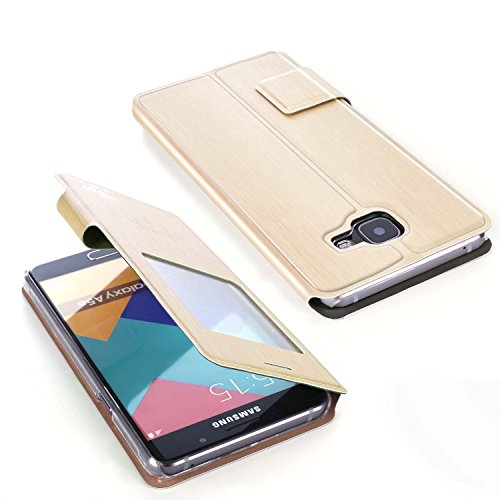 SAVFY Samsung Galaxy A5 2016 Custodia portafoglio con finestra, Custodia Flip S View in Pelle PU, Ultrasottile, Chiusura Magnetica Cover per Samsung Galaxy A5, Oro