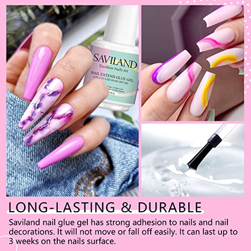 Saviland 2PCS 15Ml colla per unghie gel extra forte con pennello - 4 in 1 colla gel per unghie (indurimento necessario), colla per unghie in gel per punte acriliche extra forte e base per smalto gel