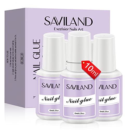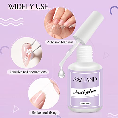 Saviland Set di colla per unghie - 3 pezzi - Set di 3 pezzi di colla per unghie acriliche professionali per unghie per unghie finte, per nail art,10 ml ciascuno