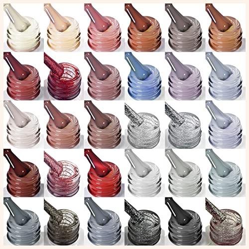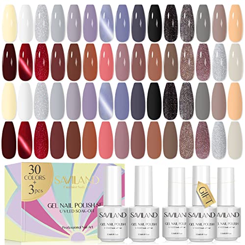 Saviland Set di smalti in gel - 30 colori Classic Glitter White Soak-Off U V Gel smalto con base e top coat lucido/opaco French Manicure Nail Art Kit Starter