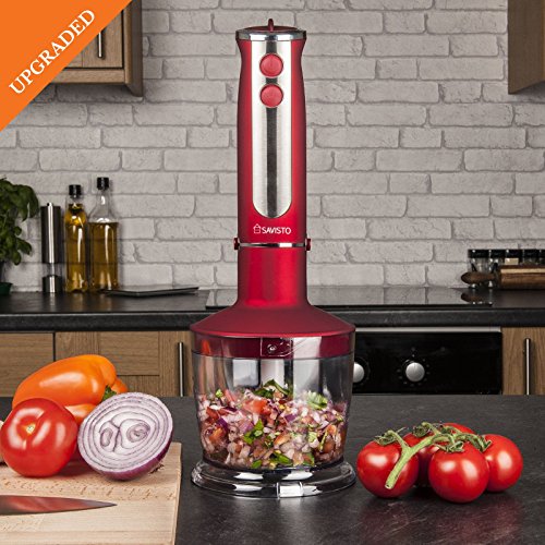 Savisto Handheld 3 in 1 750-watts Alimentazione DC Rosso Veneziano frullatore con Bicchiere 500 ml Food Processor, 800 ml & Whisk attachments