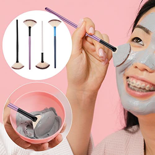 SAVITA 4pez. Pennelli a Ventaglio, Pennelli a Ventaglio per Viso Fan Brush Fan Brush Make Up Pennelli per Trucco per Peeling Maschera per Dormire Trucco per Maschera di Fango(Multicolori)