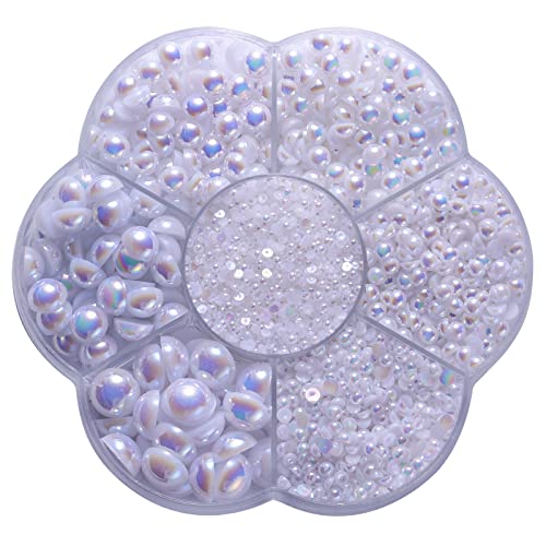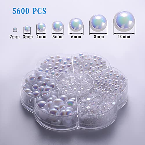 SAVITA 5600 Pezzi 2/3/4/5/6/8/10mm Perline Perle Semicircolari Perle Piatte per Decorazioni Mezze Perle Cabochon per Artigianato Fai-Da-Te Collane Gioielli Abiti da Sposa Nail Art (AB Bianco)