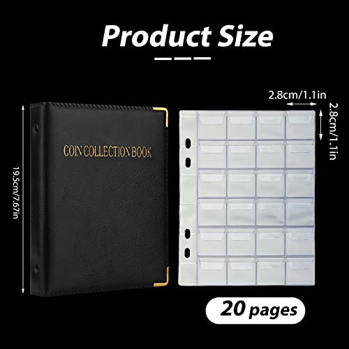 SAVITA 1 pz Libro Collezione di Monete, Include 480 Tasche Porta Album Collezione di Monete Porta Soldi Libro di Valuta Forniture (Nero)