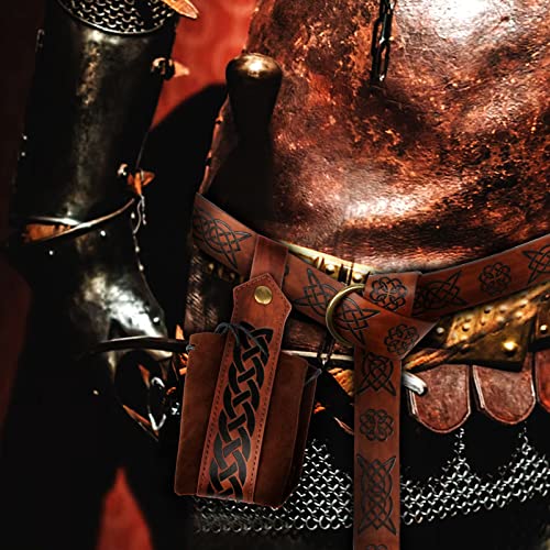 SAVITA Set di Marsupi da Cintura in Pelle, con Cintura Vichinga e Borsa Rinascimentale Marsupio Medievale Accessori Rinascimentali per Escursionismo Festival Casual Fantasy Pack (Marrone)