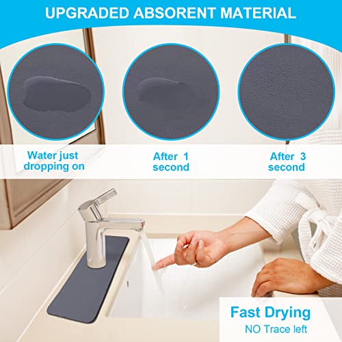 Ampia applicazione: tappetino assorbente del rubinetto non è solo un tampone di asciugatura del rubinetto, è possibile mettere lo spazzolino da denti, una tazza, il disinfettante per la mano, il sapone del piatto su questo cuscinetto e usarlo come un piccolo pad finitura, molto conveniente e pratico.
