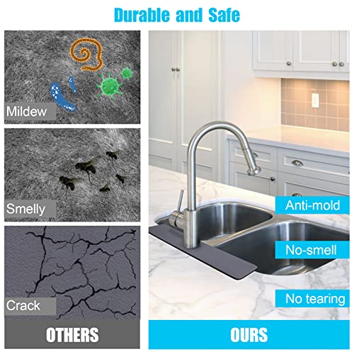 Super assorbente: questo tappetino per rubinetti per lavello assorbe istantaneamente spruzzi come una spugna gigante, impedendo l'accumulo di acqua e il supporto in gomma non solo lo tiene saldamente sul lavandino, impedisce anche all'acqua di correre sotto e macchiando i controsoffitti.