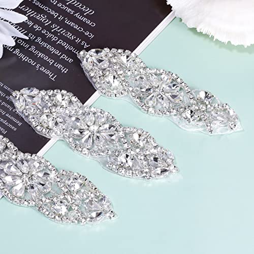 SAVITA 3 Pezzi Applicazioni di Strass, 9,5 x 3 cm Toppe Termoadesive con Strass, Decorazioni di Cristallo, Rhinestone Applique per la Sposa Vestiti Cintura Vestito (Argento)