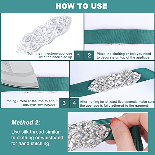 Ampia applicazione: questi appliques di bling strass sono usati nel vestire con un matrimonio ampiamente, come cinture da sposa, tacchi, abiti, fasce, bebands, abiti da ballo, cestini per ragazze flower, garpers di nozze e altro ancora.Può anche essere applicato a DIY.